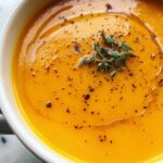 To round out your meal, pair this soup with crusty bread, such as a rustic sourdough or a warm baguette, perfect for dipping and soaking up every creamy drop. A crisp green salad dressed with lemon vinaigrette adds a zesty brightness that balances the soup’s mellow sweetness. For something heartier, roasted chicken or a simple grain bowl with quinoa and roasted veggies complements the autumnal flavors beautifully.
