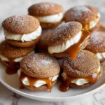 These Apple Cider Whoopie Pie Cookies with Caramel offer a delightful fall-inspired treat, combining tender spiced cookies infused with reduced apple cider and a luscious homemade caramel filling. Perfect for cozy gatherings or a sweet seasonal indulgence.