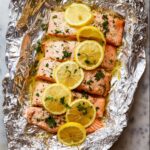 For a memorable meal, serve the salmon directly on the lemon foil—it’s rustic yet elegant. Or plate it atop a bed of fluffy couscous or wild rice to soak up every bit of that fragrant lemon-butter sauce. Adding a wedge of fresh lemon on the plate invites extra zest for those who crave it!