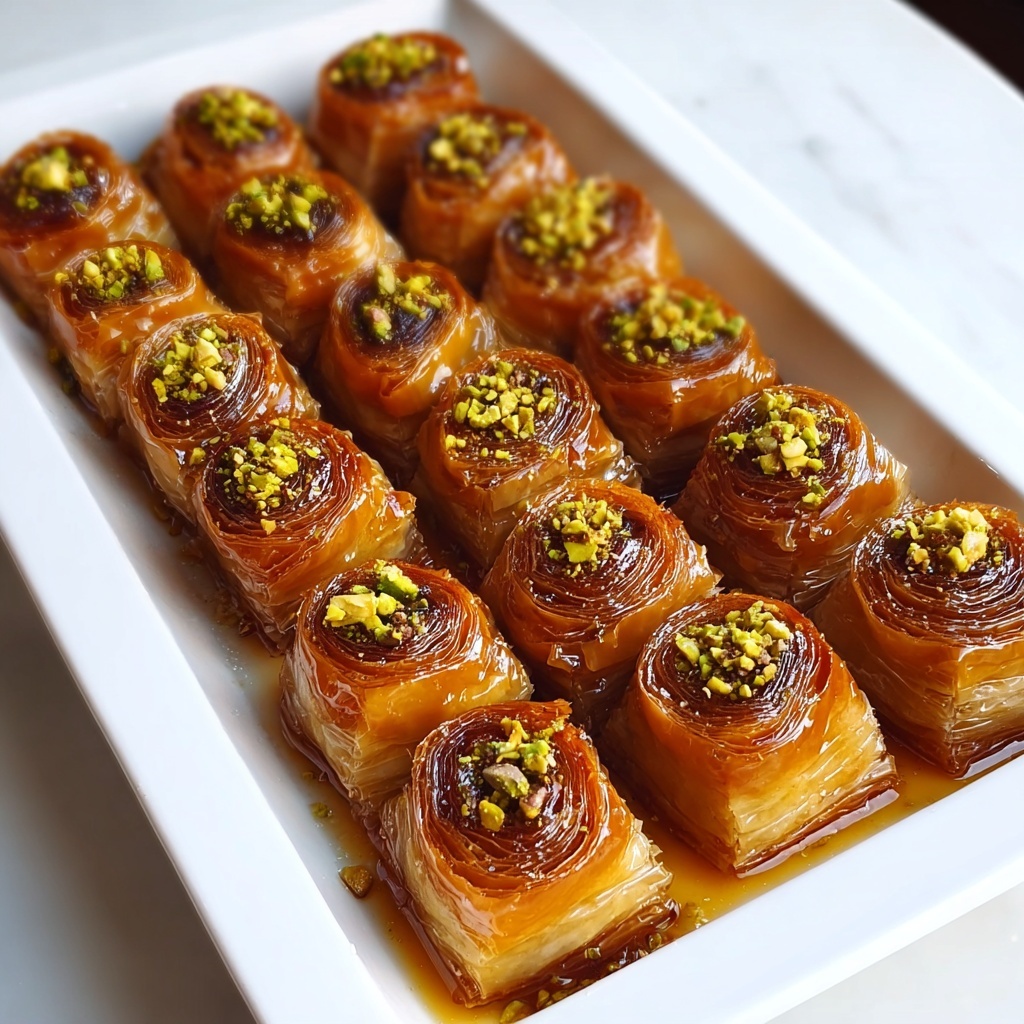 An extra sprinkle of finely chopped pistachios or a light dusting of cinnamon adds not just color but a warm, aromatic note to your baklava scrolls. You can even add a few edible rose petals for a stunning presentation that hints at Middle Eastern traditions.