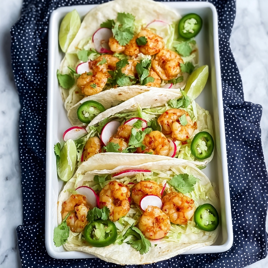 Serve these tacos alongside a light, refreshing slaw or Mexican street corn to continue the celebration of textures and tastes. A simple avocado salad or black beans pair beautifully and will keep your meal vibrant without overpowering the bold shrimp flavors.