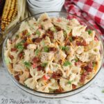 Because of the fresh veggies and mayo-based dressing, freezing is not recommended for this BBQ Chicken Pasta Salad Recipe. The texture of the vegetables and cheese can change and become watery once thawed.