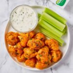 - Serve: Serve the Buffalo Cauliflower Bites immediately with homemade ranch dressing, vegan if desired, and celery sticks for a classic presentation. Enjoy!