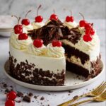 While the Black Forest Cake is a showstopper on its own, pairing it with a scoop of vanilla bean ice cream or a dollop of lightly sweetened mascarpone cream really brings out the creaminess and balances the cherry’s tang. A bold espresso or a glass of dessert wine can also complement the rich chocolate and liqueur notes wonderfully.