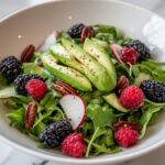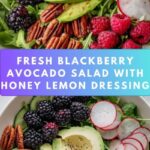 A refreshing and vibrant Blackberry & Avocado Salad, tossed with mixed greens, creamy avocado slices, tart fresh blackberries, crumbled cheese, and toasted nuts, all dressed in a zesty honey lemon vinaigrette. Perfect as a light lunch or elegant side dish with a balance of sweet, tangy, and creamy flavors.