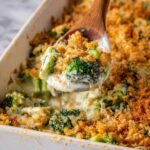 A comforting and creamy broccoli cheese casserole featuring tender broccoli mixed with sharp white cheddar, cream of mushroom soup, and a crunchy Ritz cracker topping. This easy, classic baked dish is perfect for family dinners or potlucks.