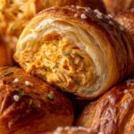 These Buffalo Chicken Dip Croissants combine the creamy, spicy flavors of classic buffalo chicken dip with flaky, buttery croissants to create an irresistible sandwich perfect for game day or casual gatherings. Loaded with shredded chicken, cream cheese, ranch dressing, buffalo sauce, and melty cheddar and mozzarella cheeses, then baked to golden perfection, these sandwiches offer a rich and flavorful bite that is both comforting and exciting.
