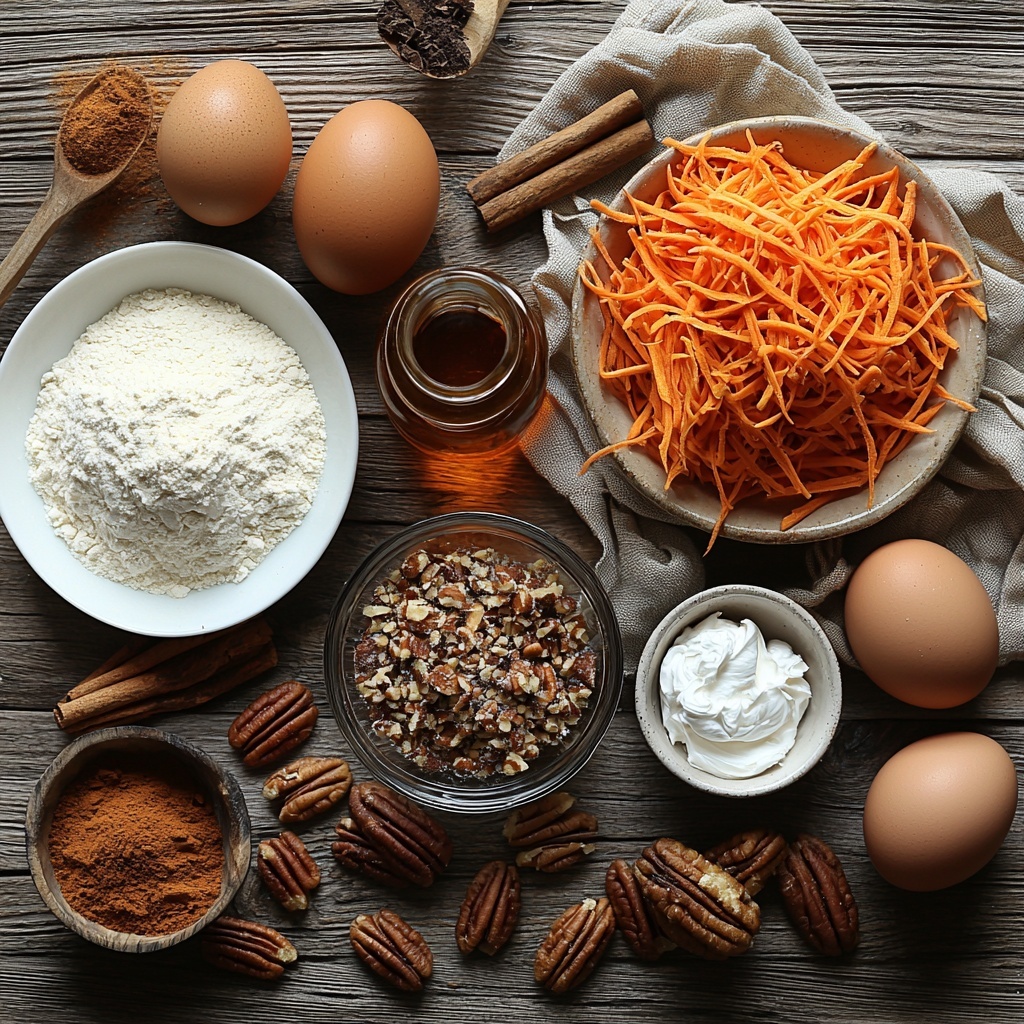 Gathering simple, wholesome ingredients is all you need to create this irresistible Carrot Cake Cheesecake with Creamy Topping Recipe. Each component plays a key role in delivering the perfect balance of flavor, texture, and that inviting golden color.