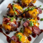Adding garnishes like fresh cilantro or chopped green onions not only brightens up the plate visually but also introduces a fresh, herbaceous contrast to the smoky, rich flavors of your Cheddar Stuffed BBQ Bacon Bombs Recipe. A drizzle of extra BBQ sauce adds shine and deepens sweetness, creating a perfect harmony with the bacon’s smokiness.