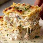 This Cheesy Chicken Alfredo Lasagna is a rich, creamy, and comforting Italian-inspired dish featuring layers of tender lasagna noodles, shredded chicken, creamy Alfredo sauce, and a blend of ricotta, mozzarella, and Parmesan cheeses. Perfect for a family dinner, this baked casserole combines classic flavors in a creamy, cheesy lasagna that’s sure to satisfy.