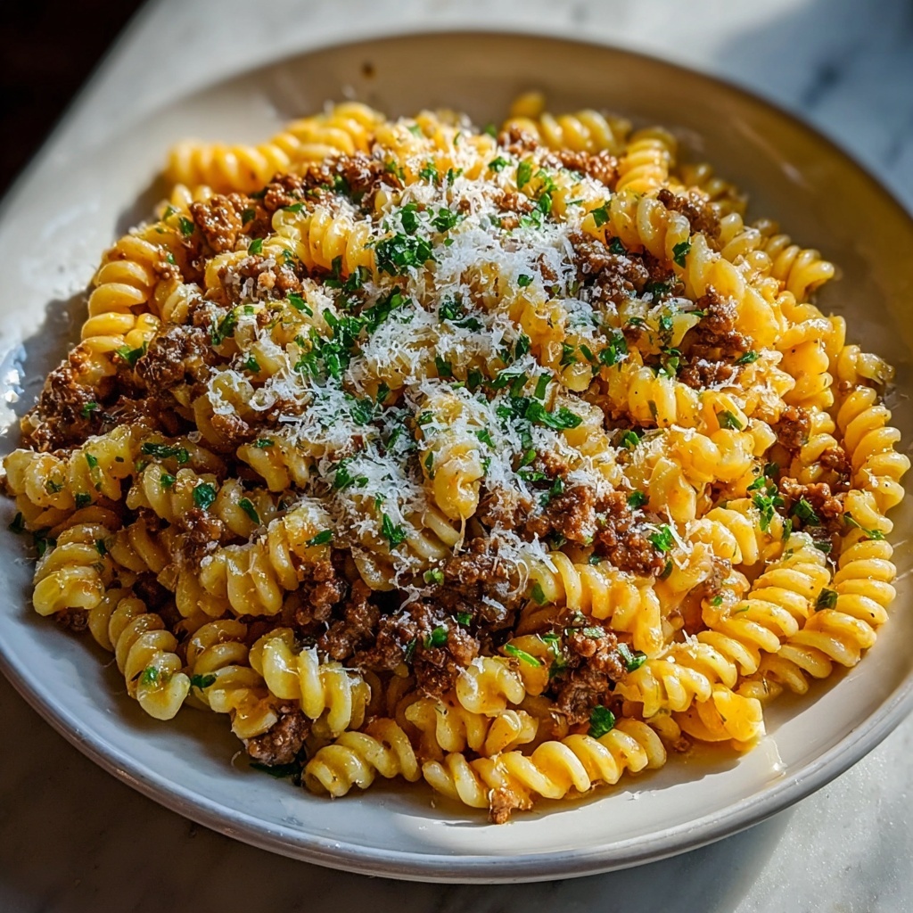 Once your Cheesy Garlic Twisted Pasta with Cajun Ground Beef Recipe is bubbling and golden, remove it from the heat. Scoop it into bowls and sprinkle fresh parsley or chives on top for a fresh pop of color and brightness that balances the richness perfectly. Serve it piping hot and prepare to be loved!