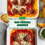 For a family dinner, serve the casserole straight from the oven in the baking pan so everyone can help themselves. For a date night, plate individual servings with a neat twirl of spaghetti, one or two meatballs stacked on top, and a drizzle of extra sauce, garnished elegantly with herbs and cheese.