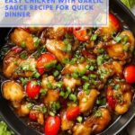A flavorful Chinese-inspired Chicken with Garlic Sauce recipe featuring tender boneless chicken breasts cooked in a savory garlic-ginger soy sauce, enhanced with hints of honey, rice vinegar, and a touch of heat from red pepper flakes, finished with toasted sesame seeds and fresh green onions for a perfect balance of taste and aroma.