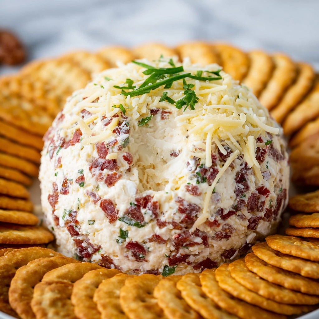 This cheese ball pairs perfectly with an array of crackers and crunchy breadsticks. To complement the salty, creamy flavors, serve alongside a crisp vegetable tray with celery, carrots, and bell peppers for dipping variety and freshness.