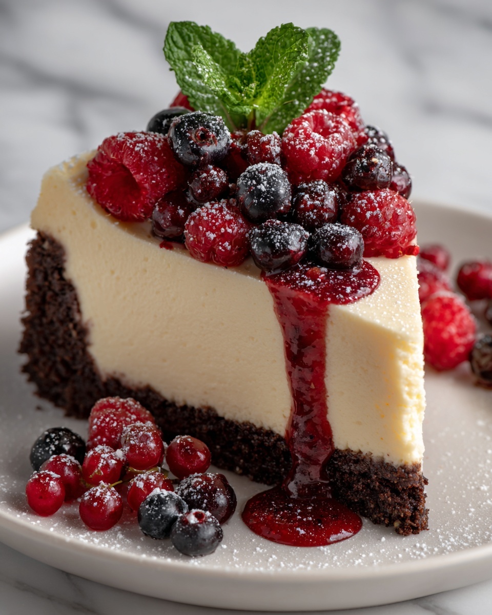 A simple dusting of powdered sugar or a handful of fresh berries can elevate this cheesecake beautifully. The berries’ natural tartness complements the rich creaminess, adding fresh bursts of color and flavor without overpowering the dessert’s delicate balance. For extra indulgence, a drizzle of fruit compote or a dollop of whipped cream creates a stunning presentation and luxurious bite every time.