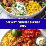 This Copycat Chipotle Burrito Bowl recipe recreates the beloved restaurant favorite at home with marinated chipotle chicken, flavorful cilantro lime rice, fresh corn salsa, and creamy guacamole. Packed with vibrant flavors and textures, it makes for a satisfying and customizable meal perfect for lunch or dinner.