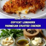This Copycat Longhorn Parmesan Crusted Chicken recipe features juicy chicken breasts seasoned and seared to golden perfection, topped with a flavorful ranch dressing, a blend of Parmesan and provolone cheese, and a crispy buttery panko crust. Finished in the oven for a deliciously golden and cheesy crust, it’s an easy yet impressive dish perfect for a satisfying weeknight dinner or special occasion.