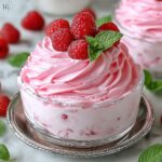 Just before serving, garnish each mousse glass with a few fresh raspberries and sprigs of mint. This simple touch adds a burst of color and a hint of herbal brightness, making the dessert even more memorable.