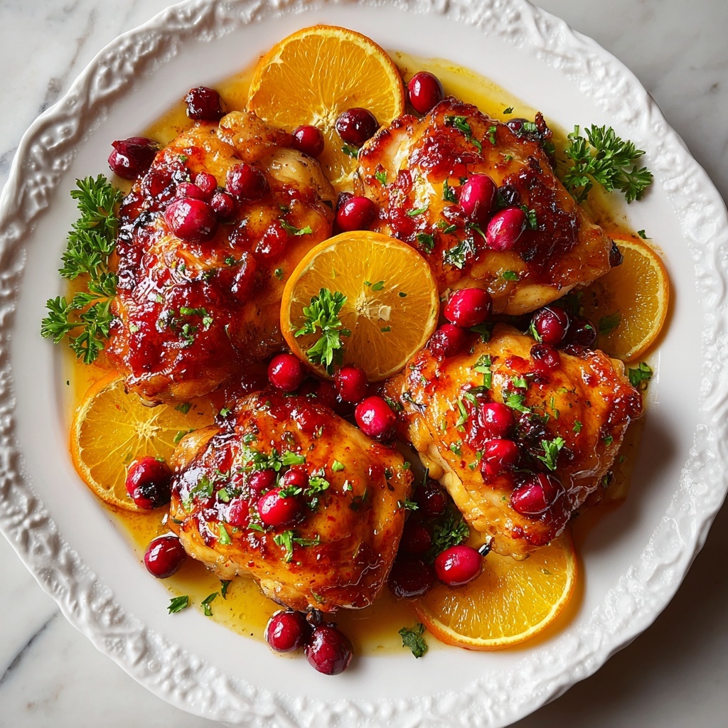 A tangy and flavorful Cranberry Orange Chicken recipe featuring tender seared chicken breasts baked in a vibrant cranberry-orange sauce with warm spices. This dish combines the sweetness of fresh cranberries and orange juice with aromatic ginger, garlic, and spices, creating a perfect balance of flavors for a delicious and elegant meal.