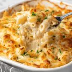 This creamy chicken pasta casserole combines tender penne pasta with juicy, seasoned chicken in a rich, cheesy sauce made from heavy cream, chicken broth, Parmesan, and mozzarella cheeses. Baked to golden perfection, it’s a comforting dish perfect for family dinners or meal prepping.