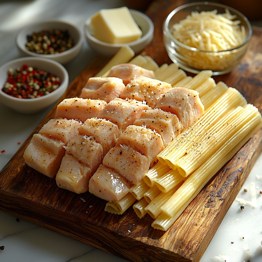 Creamy Garlic Butter Chicken and Rigatoni in Parmesan Sauce is a rich and comforting pasta dish featuring tender chicken breasts cooked in a luscious garlic butter sauce with heavy cream and Parmesan cheese. This Italian-inspired recipe combines perfectly cooked rigatoni with a flavorful, creamy sauce infused with garlic and Italian herbs, making it an easy yet elegant meal ready in just 30 minutes.
