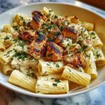 Creamy Garlic Butter Chicken and Rigatoni in Parmesan Sauce is a rich and comforting pasta dish featuring tender chicken breasts cooked in a luscious garlic butter sauce with heavy cream and Parmesan cheese. This Italian-inspired recipe combines perfectly cooked rigatoni with a flavorful, creamy sauce infused with garlic and Italian herbs, making it an easy yet elegant meal ready in just 30 minutes.