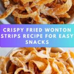 Crispy, golden fried wonton strips are a delicious and easy-to-make snack or garnish. Made from wonton wrappers, these strips are fried to perfection and perfect for dipping in sauces like sweet and sour or soy sauce. A quick prep and cook time make this a great appetizer or crunchy topping for salads and soups.