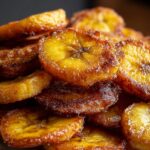 - Second Fry: Return the flattened plantains to the hot oil and fry for an additional 2–3 minutes on each side, or until they turn golden and crispy. Drain again on paper towels.