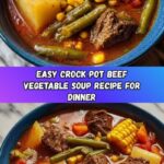 Hearty and comforting Crock Pot Vegetable Beef Soup packed with tender beef, fresh vegetables, and rich flavors. This slow-cooked soup is perfect for an easy and nourishing meal, combining seared beef stew meat with a medley of carrots, celery, potatoes, green beans, and corn simmered in a savory beef broth base.