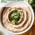 This Crockpot Refried Beans Recipe is incredibly versatile and pairs beautifully with Mexican classics like warm corn tortillas, tangy pico de gallo, or fluffy Spanish rice. They also make a satisfying companion to grilled meats, tacos, or as a hearty filling for burritos. Their creamy texture and robust flavor make them perfect for scooping and sharing.