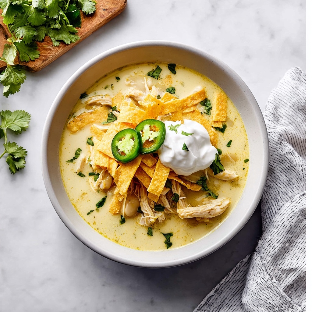 Right before serving, stir in the chopped cilantro. This fresh herb adds a burst of color and a bright contrast to the creamy richness, making your Crockpot White Chicken Chili Recipe taste as vibrant as it looks.