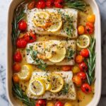 Pour the marinade evenly over the fish fillets, making sure each piece gets a generous coating. Then, scatter the halved cherry tomatoes, sliced Kalamata olives, and thinly sliced red onions over and around the fillets. This layering adds texture and a mosaic of flavors that bake beautifully together.