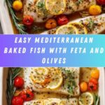 This Easy Mediterranean Baked Fish recipe features tender white fish fillets baked with a vibrant mixture of olive oil, lemon, oregano, garlic, and paprika, topped with fresh cherry tomatoes, Kalamata olives, red onions, crumbled feta cheese, and parsley. It’s a healthy, flavorful, and simple dish perfect for a nutritious Mediterranean-inspired main course.