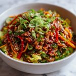 This Egg Roll Stir Fry is a quick, flavorful, and low-carb dish that captures the essence of classic egg rolls without the wrapper. Made with ground pork and a vibrant mix of cabbage and carrots, it’s seasoned with savory soy sauce, rice vinegar, and a touch of hoisin and sriracha for an optional spicy kick. Perfect for a healthy weeknight dinner or meal prep, it’s easy to customize and ready in under 30 minutes.