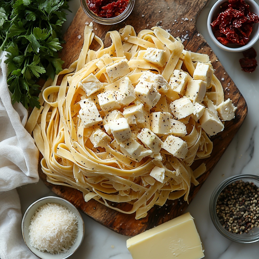Gathering fresh, straightforward ingredients is the key to making this dish shine. Each element plays a vital role in building the rich, silky texture and well-rounded flavor profile that define this Fettuccine Alfredo with Chicken and Sundried Tomatoes Recipe.