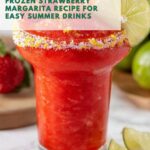 Why not serve this Frozen Strawberry Margarita in margarita glasses that have been chilled beforehand to keep the drink cold longer? You could also get playful and serve it in mason jars with colorful striped straws for casual gatherings. Adding a small skewer with strawberries and lime slices elevates the presentation and makes your cocktail feel extra special.