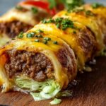 These Garlic Butter Beef Cheeseburger Rollups are a delightful twist on classic cheeseburgers, combining seasoned ground beef and melted cheddar and mozzarella cheeses wrapped in soft flour tortillas. Brushed with garlicky butter and baked to golden perfection, they’re perfect for a quick, flavorful meal or party appetizer.