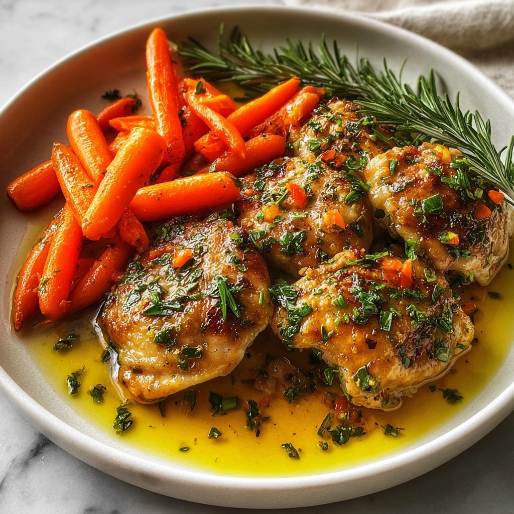 This Garlic Herb Chicken & Carrot Plate is a flavorful and wholesome meal featuring tender boneless chicken breasts marinated in fresh garlic and herbs, paired with sweet honey-butter glazed carrots. Cooked on the stovetop, this dish balances savory and sweet notes, making for a satisfying, easy-to-prepare weeknight dinner.