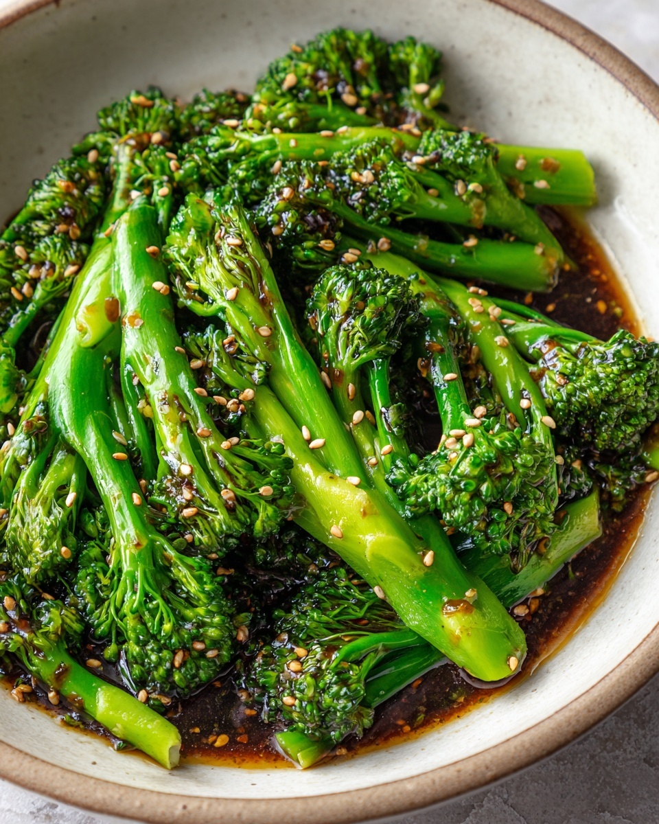 Transfer the cooked broccoli to a serving plate. Sprinkle generously with toasted sesame seeds and freshly sliced green onions. These simple garnishes add the perfect textural contrast and a fresh, vibrant finish. You can serve this dish warm or at room temperature, making it super versatile.