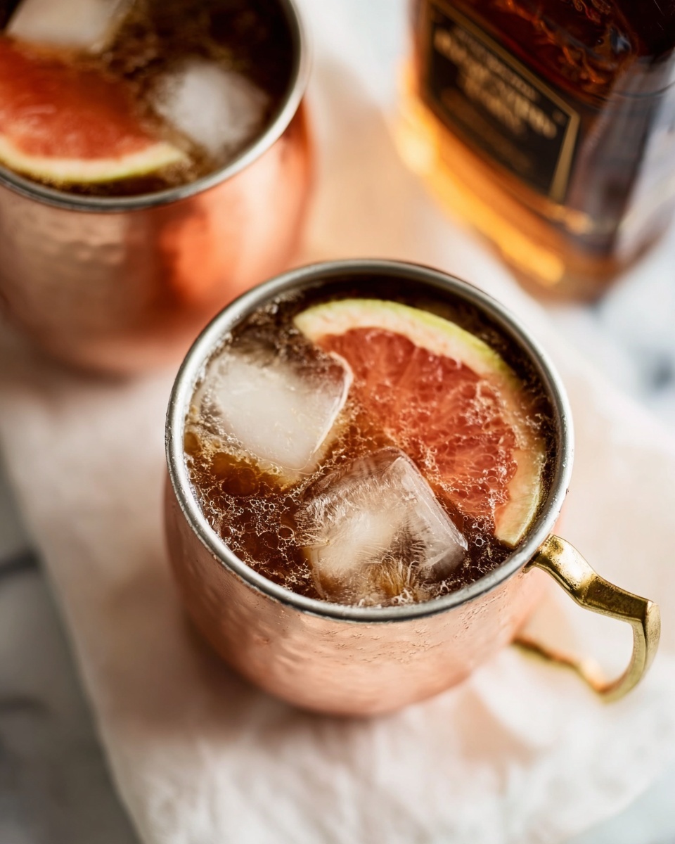 A refreshing twist on the classic Irish Mule, this Grapefruit Irish Mule combines the zesty brightness of freshly squeezed grapefruit juice with smooth Irish whiskey, topped off with spicy ginger beer for a perfect, invigorating cocktail.