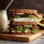 To reheat, remove any fresh greens and avocado to avoid mushiness, then warm the chicken and bacon in a skillet or microwave until hot. Toast the bread again for extra crunch, then reassemble the sandwich with fresh greens and avocado for the perfect reheated meal.