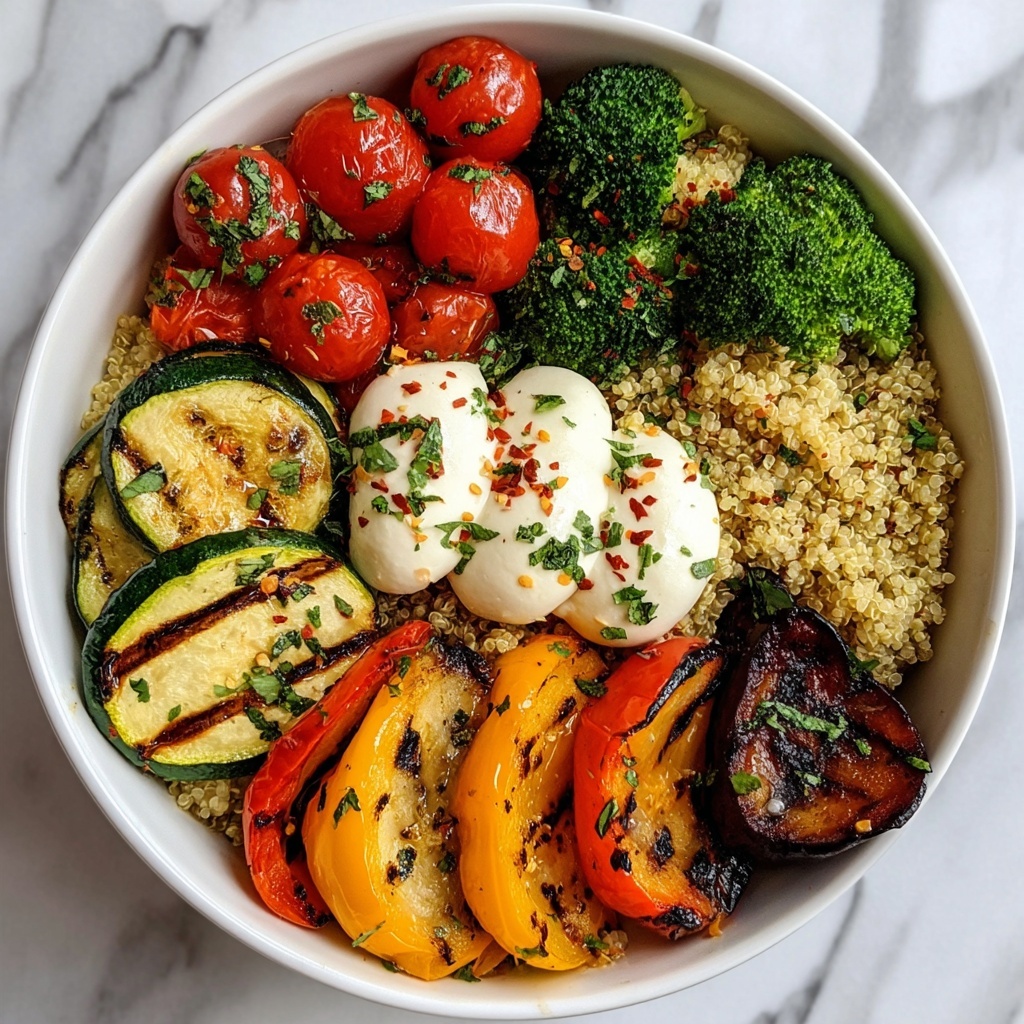 This Grilled Veggie Bowl with Quinoa is a vibrant, healthy meal featuring a nutritious base of fluffy quinoa topped with an array of colorful grilled vegetables marinated in a flavorful blend of olive oil, balsamic vinegar, garlic, and herbs. Finished with a tangy and slightly sweet dressing, this dish is perfect for a light lunch or dinner that is both satisfying and wholesome.