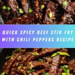 This Hot and Spicy Beef recipe features tender flank steak strips stir-fried with dried chili peppers and green onions, coated in a flavorful, slightly sweet and tangy sauce made with soy sauce, coconut sugar, hoisin, and garlic. Ready in just 20 minutes, this dish is perfect for a quick, satisfying meal with a spicy kick.