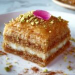 This Irresistible Rose Water Baklava Cake blends the aromatic flavors of rose water and cardamom with the rich textures of almond and pistachio flours. Inspired by traditional baklava, this cake is moist and fragrant, layered with the subtle floral essence and topped with crunchy nuts and dried rose petals for an elegant finish. Perfect for festive occasions or an indulgent treat, it’s easy to bake and delivers a sophisticated twist on a beloved dessert.