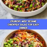 This Irresistibly Crunchy Miso Sesame Dense Bean Salad Delight combines hearty chickpeas and edamame with vibrant purple cabbage and carrots, all tossed in a savory miso-sesame dressing. Finished with optional crunchy roasted nuts, this refreshing salad delivers a perfect balance of textures and flavors, making it a wholesome and satisfying dish ideal for a light lunch or a nutritious side.