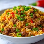 • 1 lb ground beef: Adds heartiness and a savory depth that makes this rice a full meal.