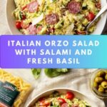 A vibrant and flavorful Italian Orzo Salad combining tender orzo pasta with fresh vegetables, savory salami, olives, and a creamy pesto dressing. Perfect for a light lunch or a side dish at gatherings, this salad offers a delightful Mediterranean-inspired taste with a satisfying texture.