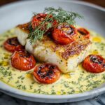 This Juicy Grilled Cod with Roasted Tomatoes and Creamy Dill Sauce recipe features tender, perfectly grilled cod fillets served alongside sweet roasted cherry tomatoes and paired with a tangy, creamy dill sauce. It’s a fresh, flavorful dish that’s quick to prepare and perfect for a healthy, satisfying meal.