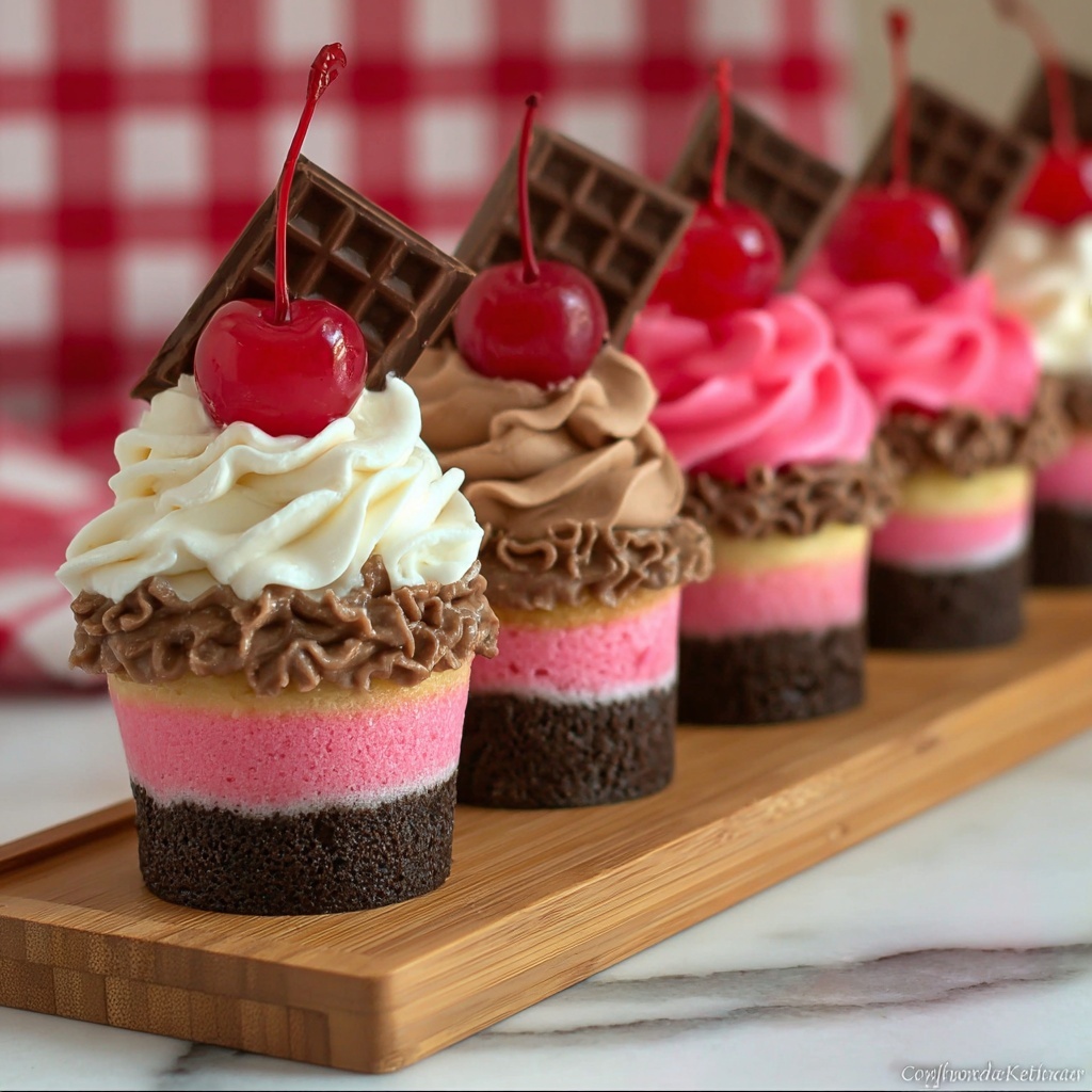 Serve these cupcakes alongside a scoop of vanilla bean ice cream for the ultimate Neapolitan experience, or pair with fresh berries to brighten the palate. A simple glass of cold milk or a lightly brewed coffee can also complement the rich, layered flavors wonderfully, enhancing your dessert experience without overwhelming the cupcakes.