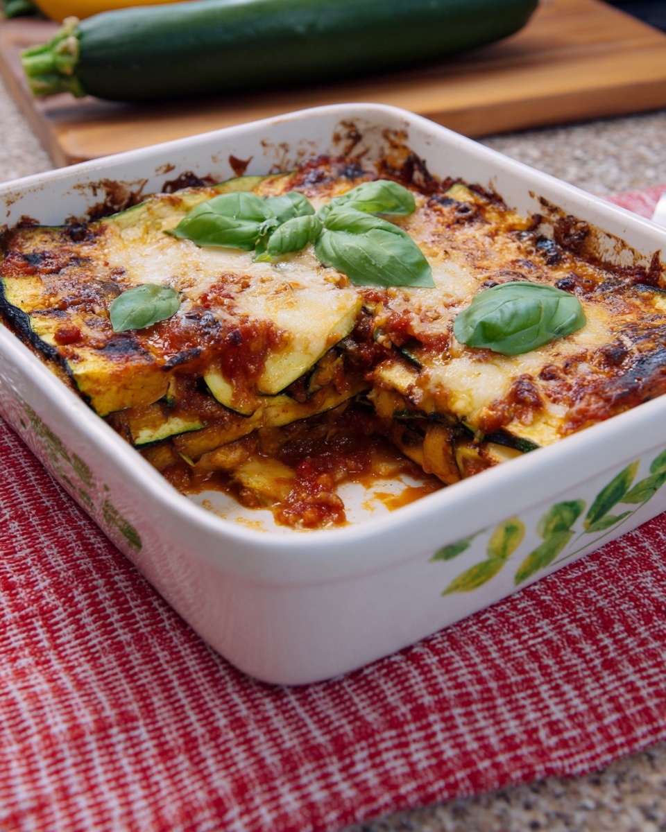 - Assemble the Layers: Spread a spoonful of marinara sauce across the bottom of a small baking dish. Start layering with roasted zucchini strips, then spread a portion of the ricotta mixture on top, followed by another spoonful of marinara and a sprinkle of shredded mozzarella. Continue layering these ingredients until all are used, finishing with marinara sauce and mozzarella cheese on the top layer.